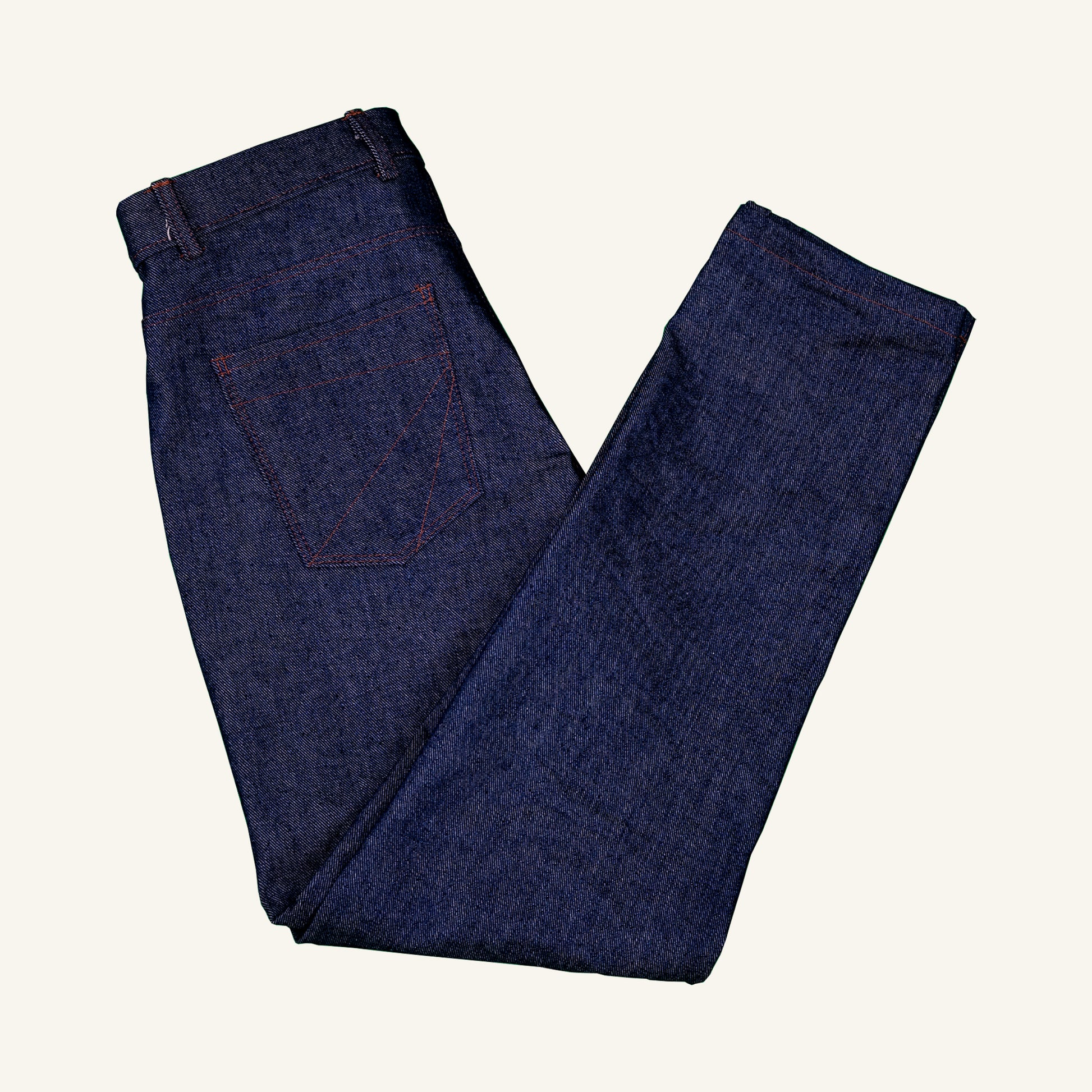 Pantaloni jeans in denim a vita media - capo essenziale e strutturato, completamente fatto a mano in Toscana.